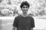 portrait of happy young indian gen Z boy standing at summer park, looking at camera. Positive emotion.