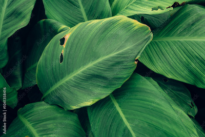 leaves of Spathiphyllum cannifolium, abstract green texture, nature background, tropical leaf