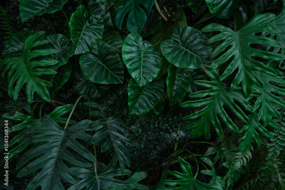 Full Frame of Green Leaves Pattern Background, Nature Lush Foliage Leaf Texture, tropical leaf.