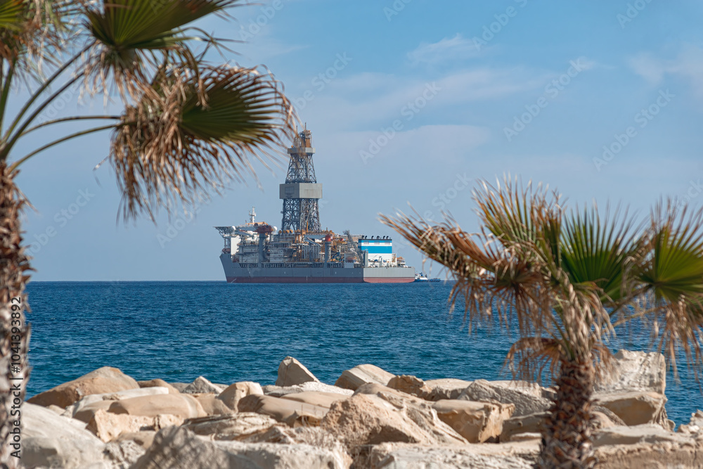Drilling vessel moored in Akrotiri bay, Limassol, Cyprus