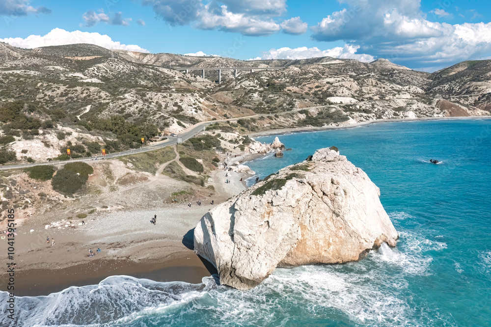 Petra Tou Romiou, Aphrodite's Rock, emerging from turquoise water in Cyprus