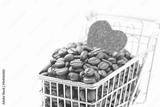 Shopping cart filled with roasted coffee beans