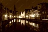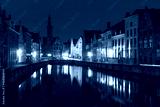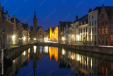 Scenic night cityscape with views of Spiegelrei and Jan van Eyckplein in Bruges, Belgium
