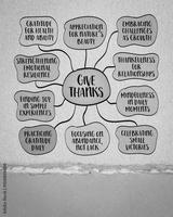 Give thanks concept, gratitude as a powerful and transformative mindset, positives in life, even amidst challenges, mind map infographics.