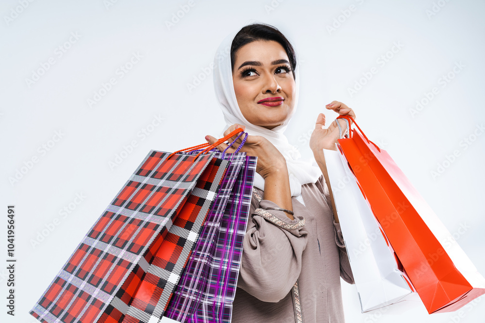 Beautiful arab middle-eastern woman with traditional abaya in studio