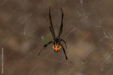 A venomous Brown Button spider (Latrodectus geometricus) on its web