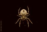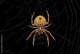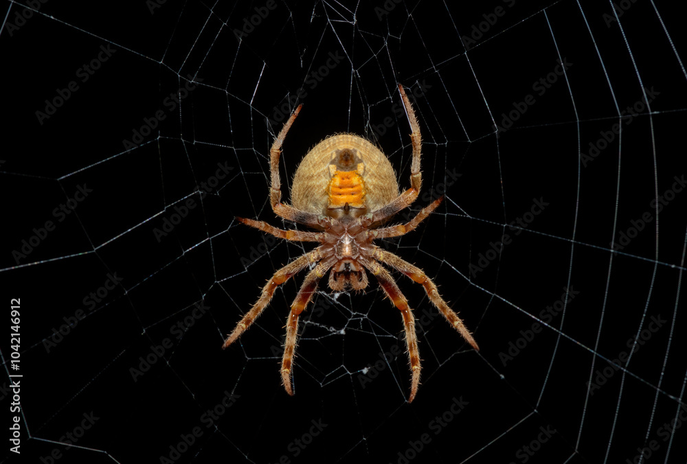 A beautiful hairy field spider (Neoscona sp) on its web on a warm summer's evening