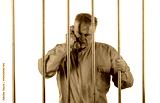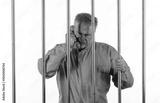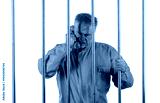 male prisoner with phone behind bars