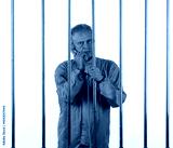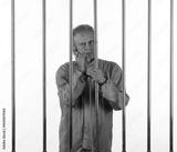 male prisoner with phone behind bars