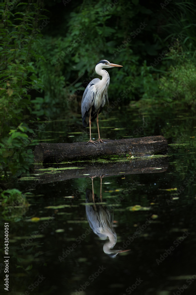 Grey heron, ardea cinerea in natural environment