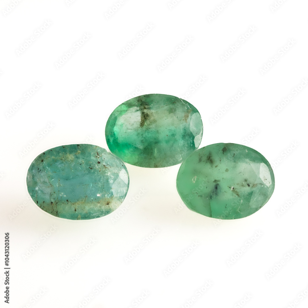 Trio of Brilliantly Faceted Emerald Gemstones with Intricate Inclusions
