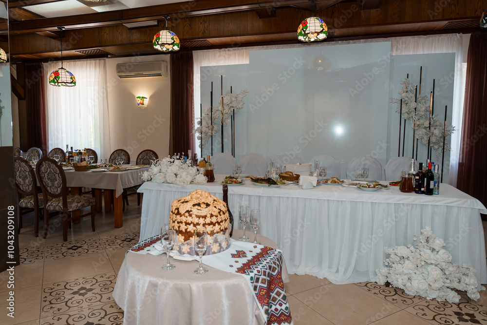 Elegant Banquet Hall with Festive Table Decorations