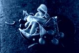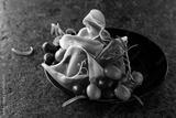 Italian prosciutto crudo with olives and rosemary on a black stone table.