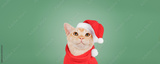 Burmese kitten in red Santa Claus hat