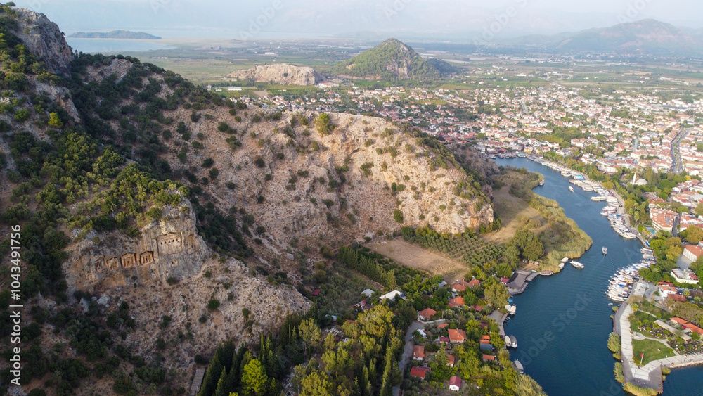 Rock-cut temple tombs in Kaunos Dalyan - Turkey (Turkish name; kaya mezarlari) Ancient city of Kaunos, Dalyan valley, Turkey. Kaunos (Latin: Caunus)