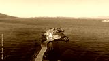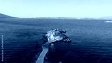 Authentic traditional Greek islands- unspoiled Chios, little church in the sea over the rocks Agios Isidoros. Eastern Aegean islands