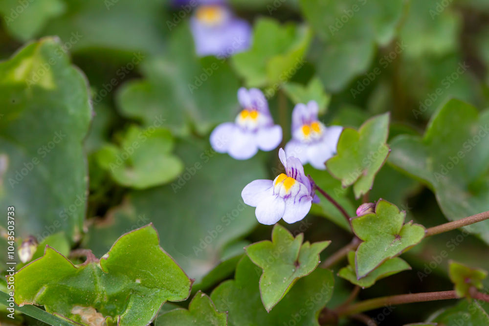 Cymbalaria muralis. Cymbolaria, small purple wildflowers.