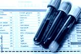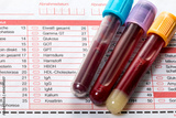 Blutuntersuchung, Blutproben auf einem Laborformular