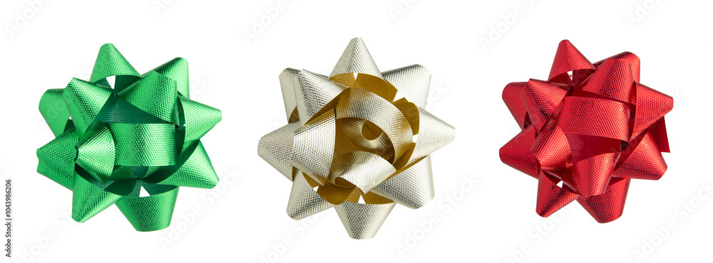 Set of isolated multi-colored bows for decorating a gift box on a white background.