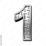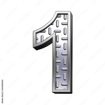 One digit from steel tread plate alphabet set, isolated on white. Computer generated 3D photo rendering.