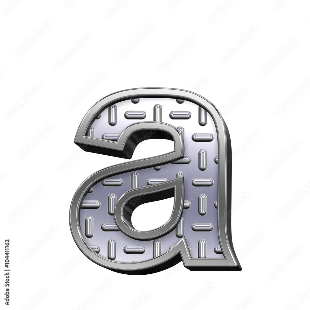 One lower case letter from steel tread plate alphabet set, isolated on white. Computer generated 3D photo rendering.