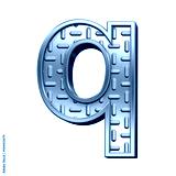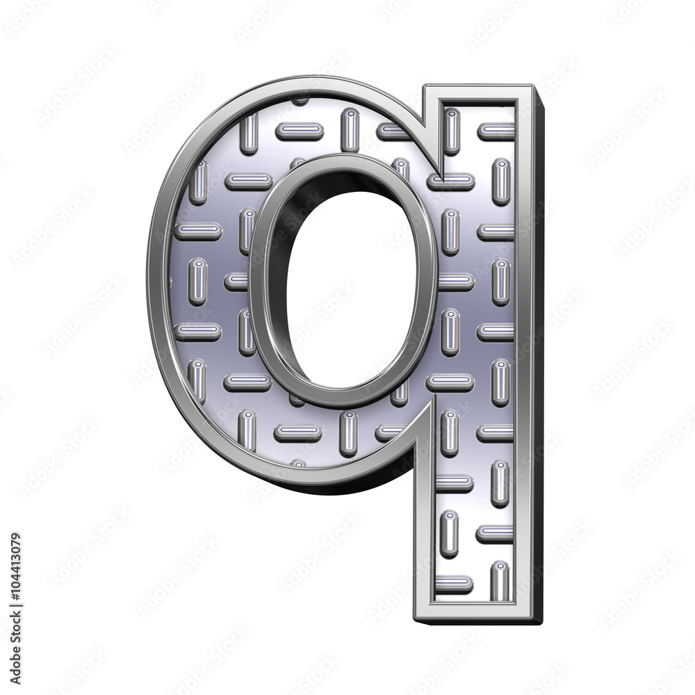 One lower case letter from steel tread plate alphabet set, isolated on white. Computer generated 3D photo rendering.