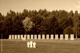 German military cemetery near the village of Sologubovka, Leningrad Oblast, Russia. Stone crosses and slabs with lists of German soldiers who died during World War II in the Leningrad Oblast of Russia