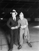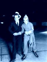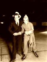 Young couple ice skating together