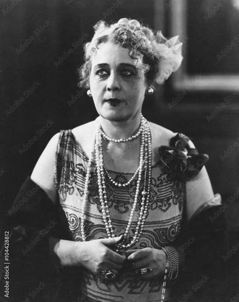 Portrait of woman wearing several necklaces