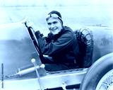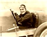 Young man sitting in a race car with a big smile