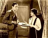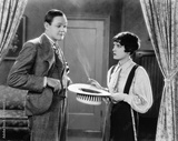 Woman holding hat and smoking interacting with man