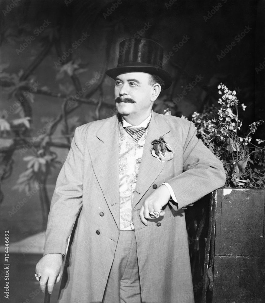 Portrait of man leaning against a potted plant