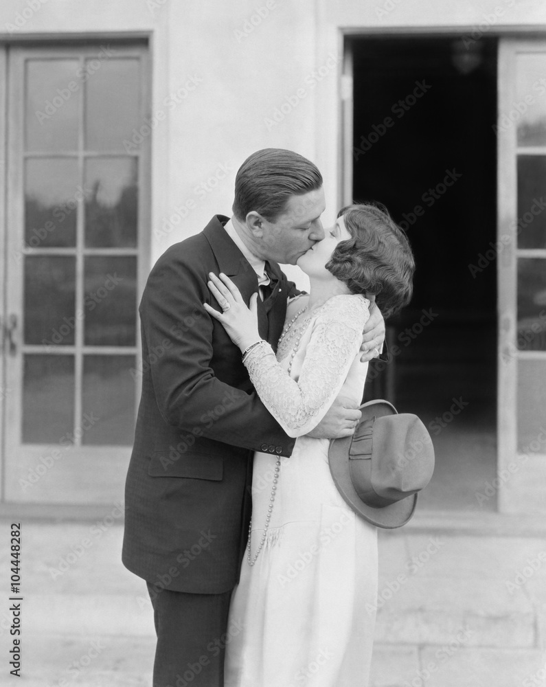 Couple kissing outside