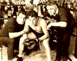 Boxer in corner with trainers