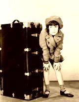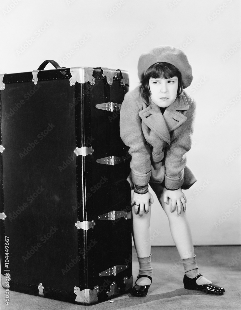 Girl standing next to suitcase