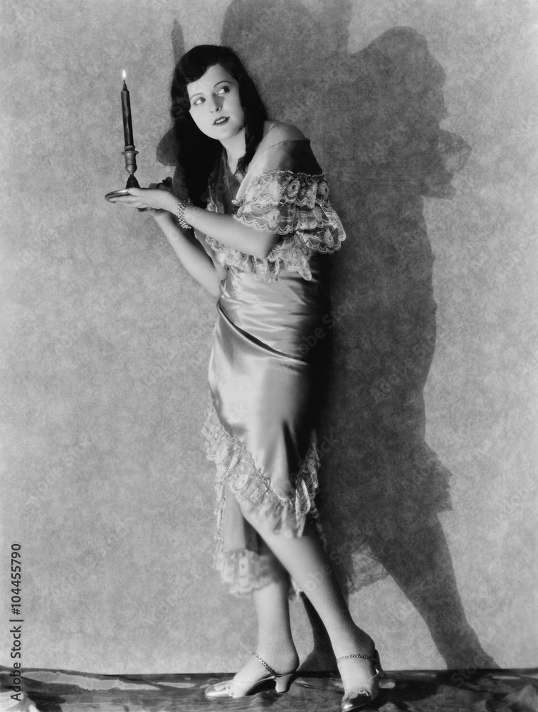 Profile of a young woman holding a burning candle