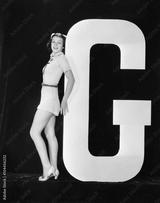 Woman posing with huge letter G