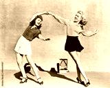 Two women dancing outside