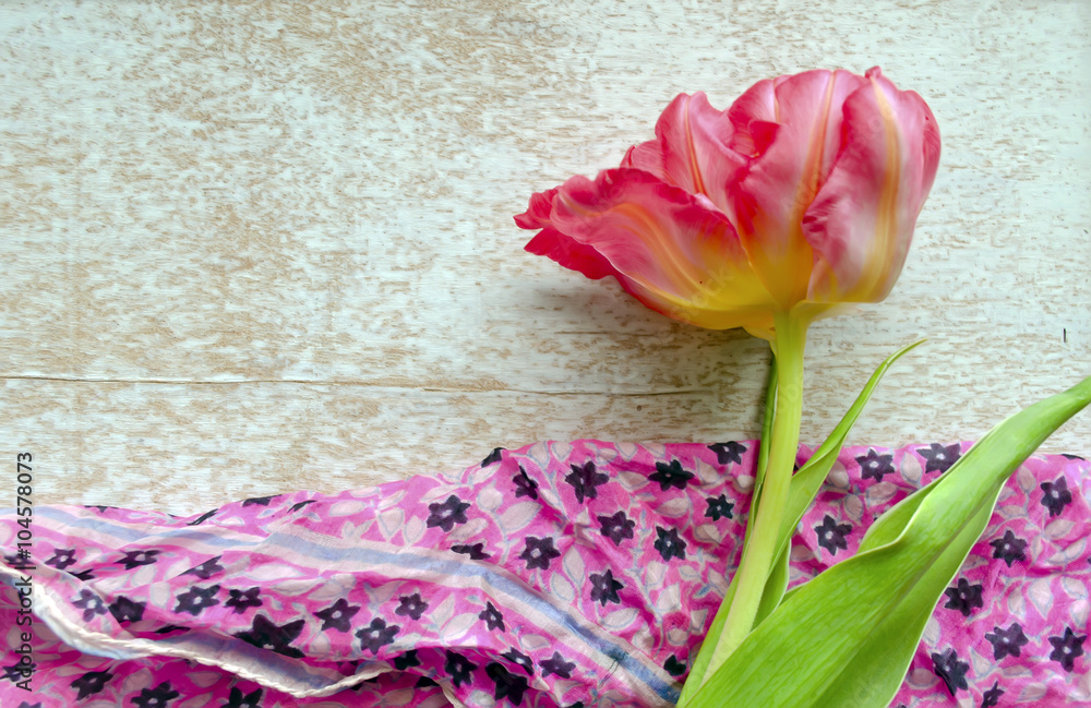Isolated beautiful red colored tulip flower with place for text. Close up.