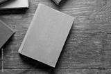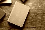 Pile of books on wooden background