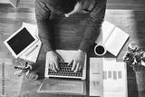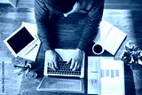 High view of man working on laptop