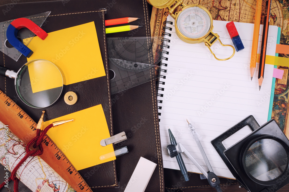 Preparing for travel, trip vacation, tourism mock up close-up on vintage map.