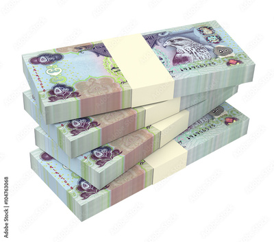 United Arab Emirates dirhams bills isolated on white background. Computer generated 3D photo rendering.