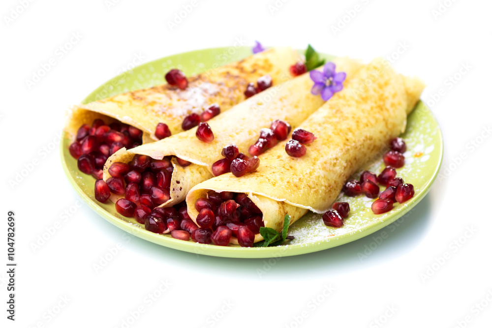 Delicious Tasty Homemade crepes with pomegranate