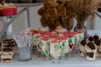 Colorful Dessert Table Featuring Varied Mini Parfaits and Sweet Treats