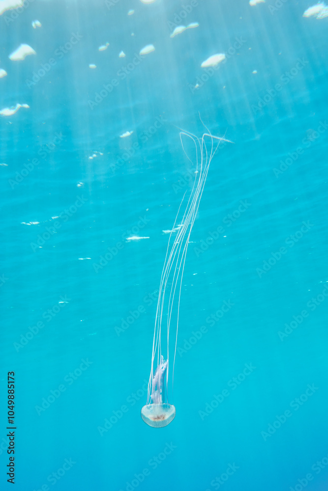 Underwater life. Jellyfish swims in the ocean. Sea life.