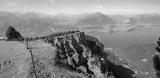 view from Niederhorn mountain to lake Thunersee and Thun village, switzerland