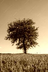 a lonely pear tree against the autumn sky
