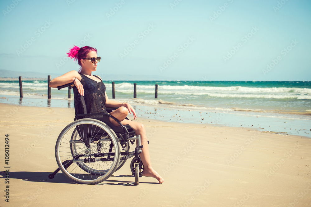 Disabled woman at the beach