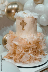 Elegant Cream and Gold Themed Cake with Floral Accents